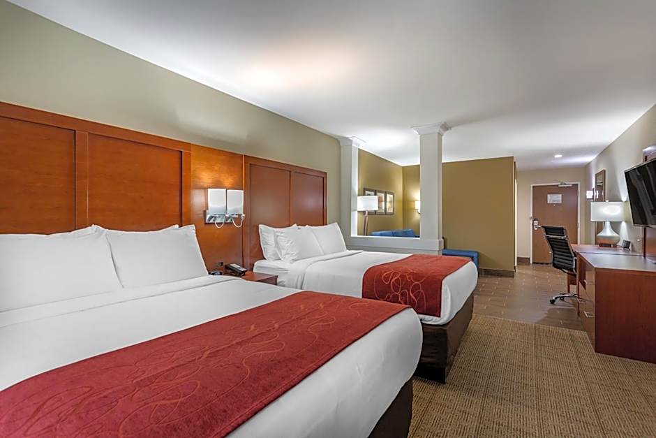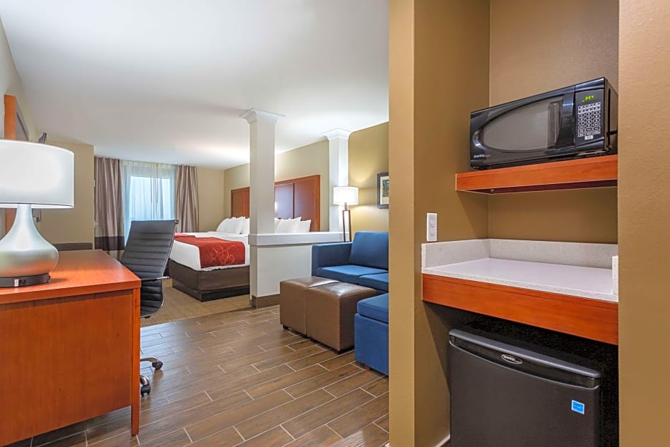 This suite features a seating area, a sofa bed, a microwave, a refrigerator, cable TV with HBO and a roll-in shower.